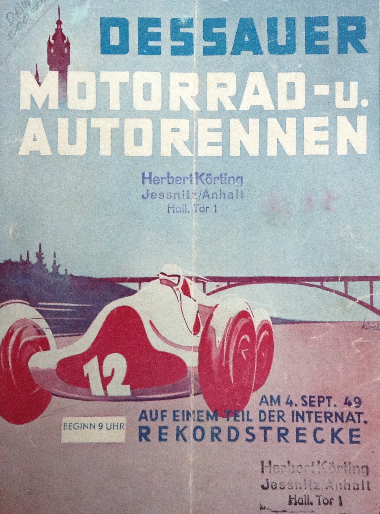 On the first of October 1950, Mr. Herbert Körting participated in the Dessau race for motorcycles.